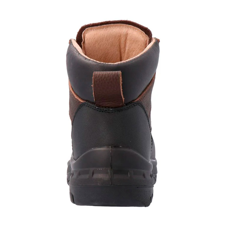 Este zapato cuenta con una puntera compuesta para mayor resistencia y resistencia al mismo tiempo que protege contra temperaturas y detectores de metales, una suela antideslizante para máxima estabilidad, una plantilla antiperforación flexible con fibra sintética de primera calidad para protección del pie y una parte superior de cuero y caucho que es hidrocarburo.